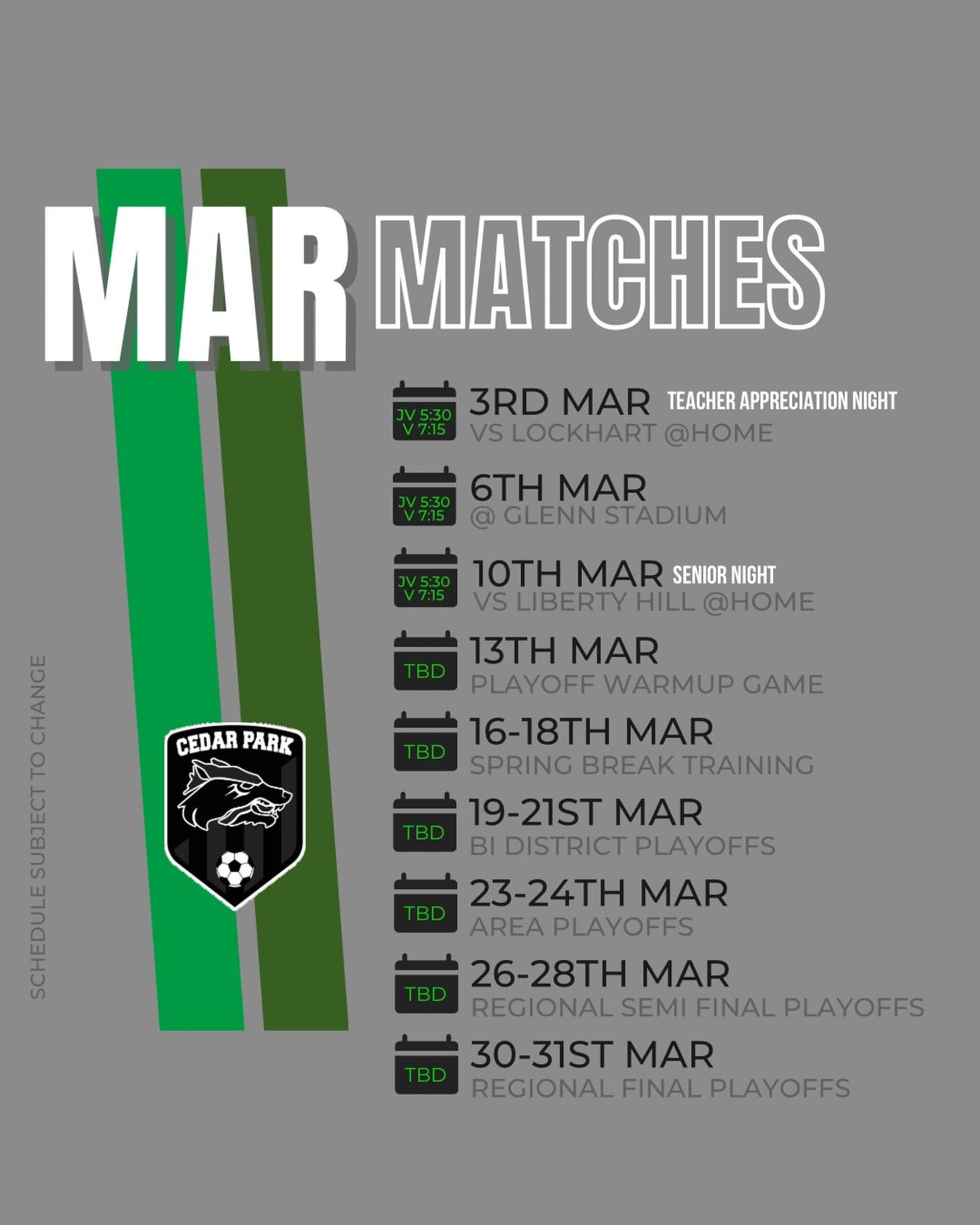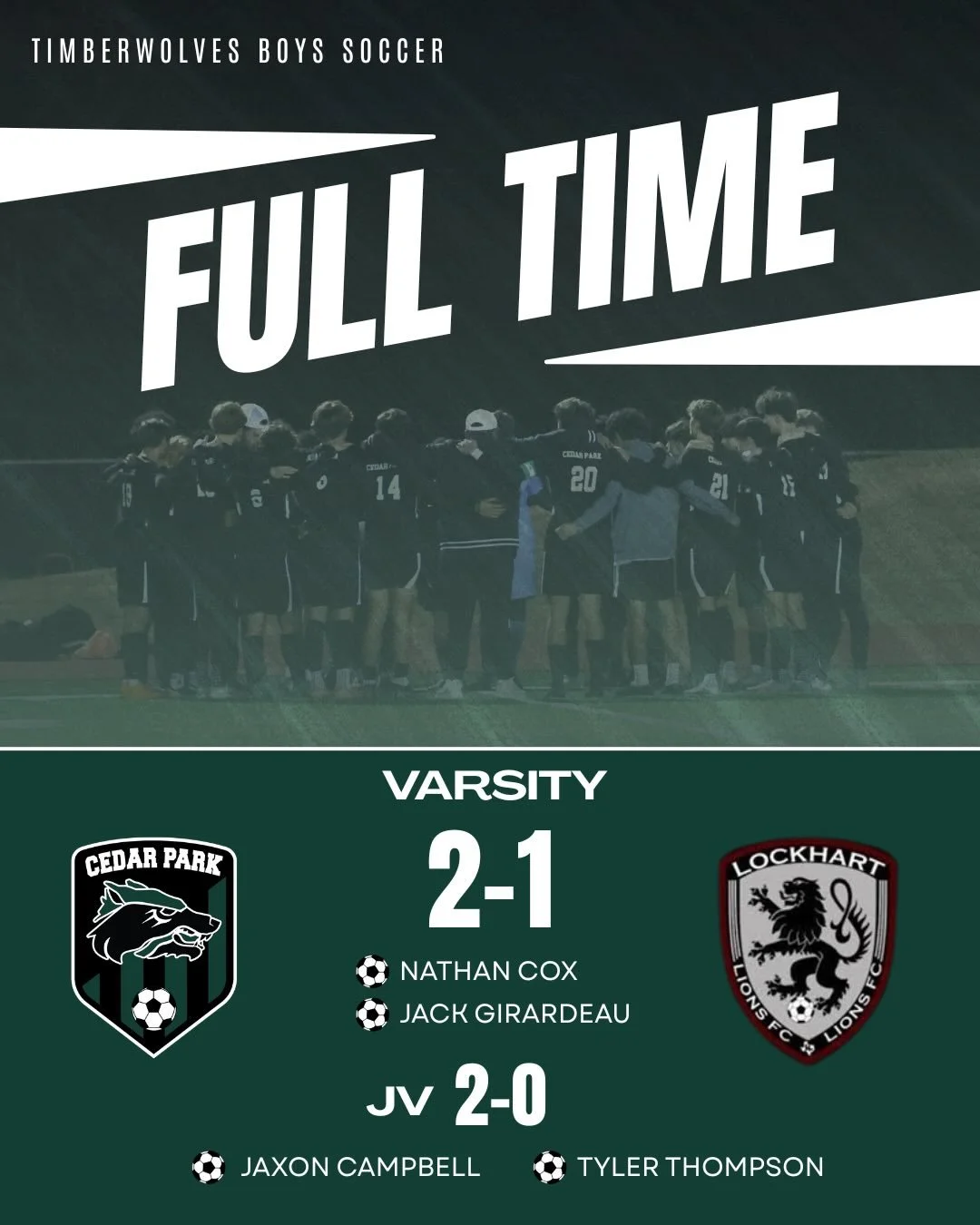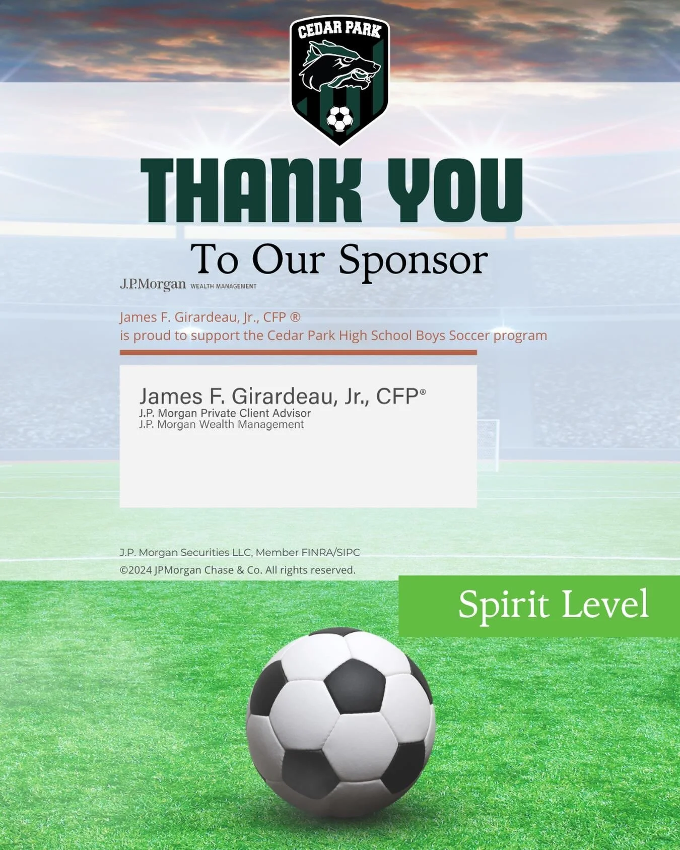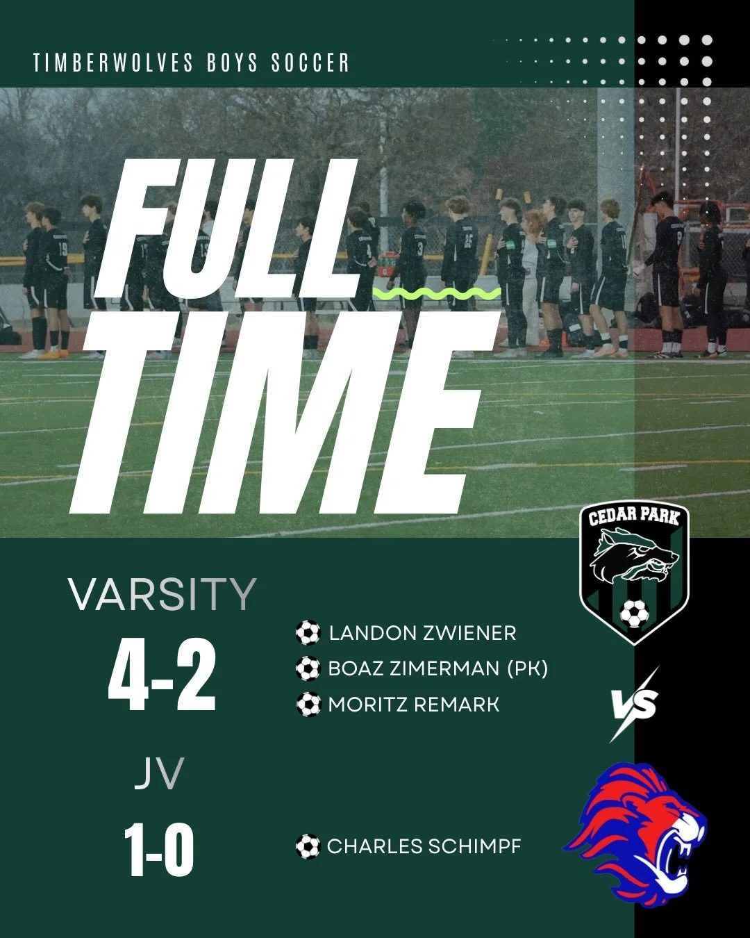 A huge THANK YOU to the amazing businesses and community members who support the Cedar Park Boys Soccer team this season! Your sponsorship fuels our program—helping with gear, events, and opportunities that make this season special for our student-athletes. Please support the sponsors who support our Timberwolves!